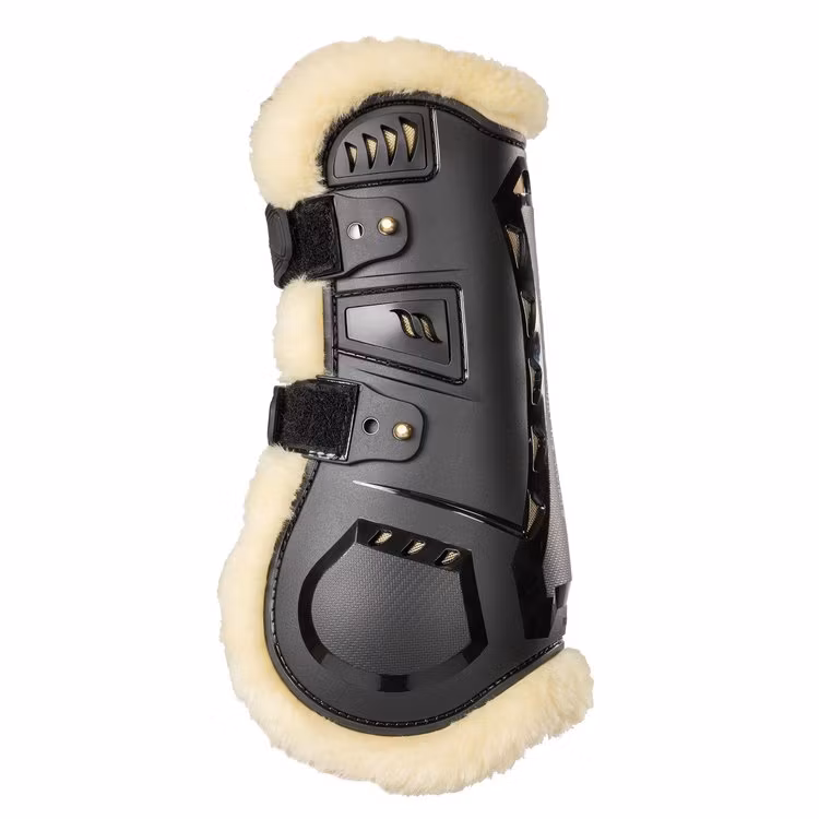 Väldesignade benskydd, fodrade med mjuk fuskpäls som gör dem perfekta för känsliga hästar - och som en snygg detalj.