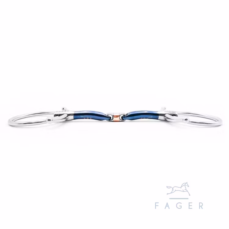 Fager's Baby fulmer ger stabilitet åt mundelen och hjälper till att förtydliga tygeltaget. Samt skyddar mungiporna från nyp. Ringarna kommer längre ut från mundelen vilket ramar in hästen och undviker tryck mot kind och kindtänder.